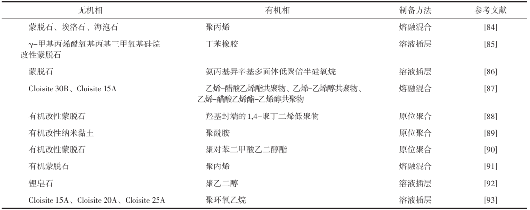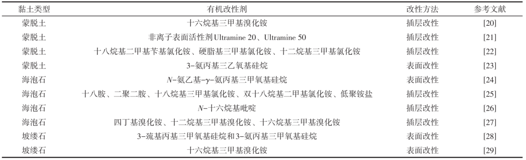 表1 黏土有机改性方法