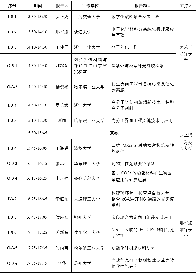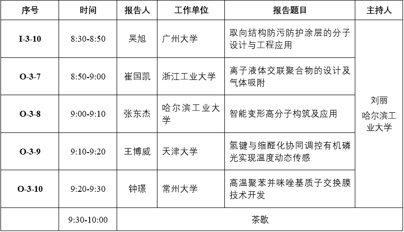 分论坛三:特种高分子分子工程